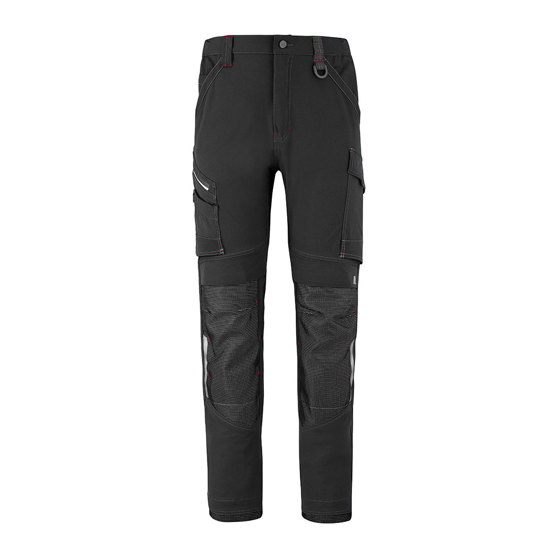 Tissu 94% nylon 6% spandex 260 g/m² . 2 Poches italiennes , 2 poches cuisses , 2 poches arrière . Panneau d'aisance entrejambe avec triple surpiqûre , poches genouillères , ourlet cordura . Braguette zip , réhausse dos + 3 passants larges dans le dos . Conformité : EN 14404 2004 + A1 : 2010 protection des genoux niveau 0 / Type 2 si associé avec inserts mousse T430 . Lavage ménager . Taille : 36 à 60 .