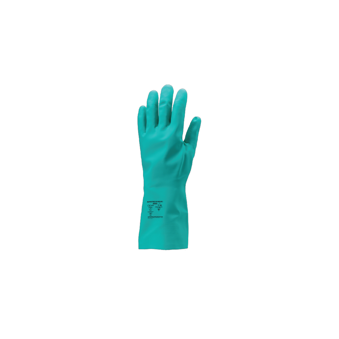 GANT DE PROTECTION CHIMIQUE - Acrylonitrile vert, épaisseur 0,38 mm, intérieur coton flocké, finition extérieure adhérisée diamant . Manchette coupe droite, longueur 33cm .
