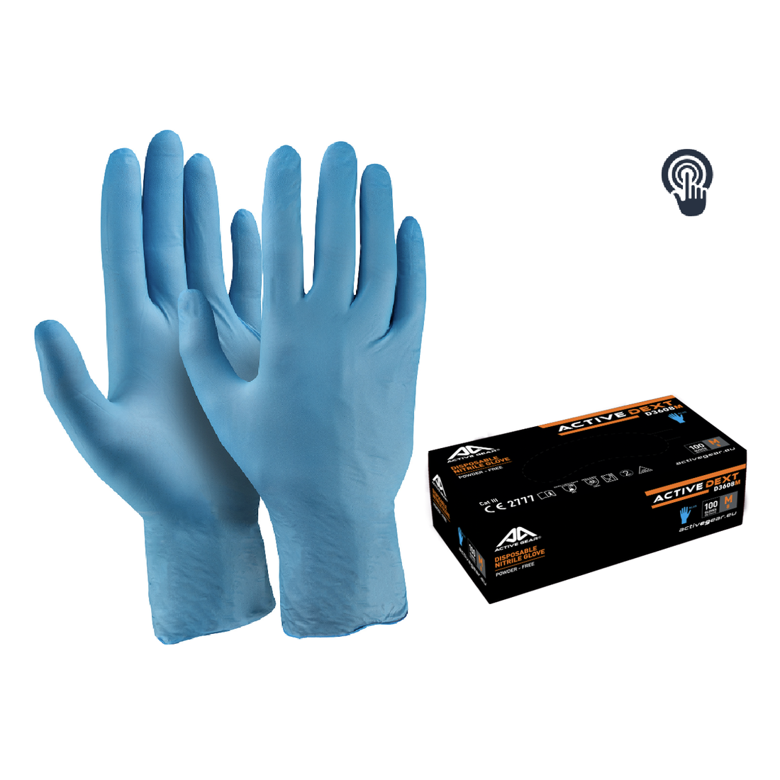 BOITE DE 100 GANTS NITRILE JETABLES BLEUS ACTIVE DEXT